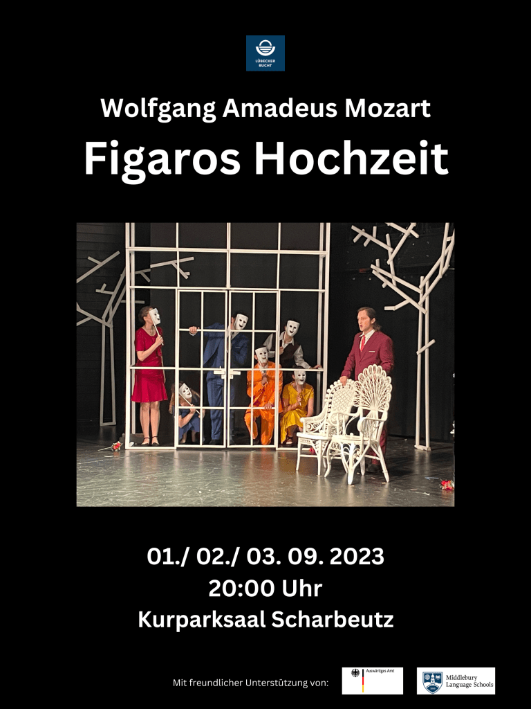 Projekt 2023: W. A. Mozart, “Figaros Hochzeit”. Gekürzte Singspielfassung mit Klavierbegleitung”. 1. – 3. September 2023, Kurparkhaus Scharbeutz.